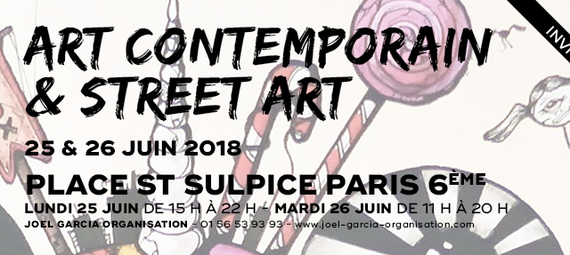 SALON ART CONTEMPORAIN ET STREET ART PLACE ST SULPICE- PARIS 6 LUNDI 25 ET MARDI 26 JUIN 2018
